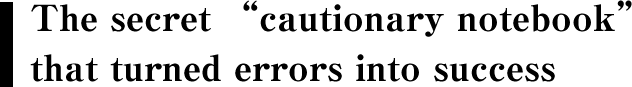 At Tsunekichi’s brewery, a notebook called the “cautionary notebook” was utilized among the workers to record mistakes. The front page of the “cautionary notebook” in 1921 (when Tsunekichi was 48 years old) states, “the following notes must be a record of facts, written with frankness and honesty.” The notebook is filled with things that workers noticed on a daily basis, in categories such as: “matters that require attention in order to prevent the same mistakes,” “matters that are easy to forget,” and “matters that need future improvements.” These are proof that the brewery adopted a system that turned failures into lessons to build upon in the future.
